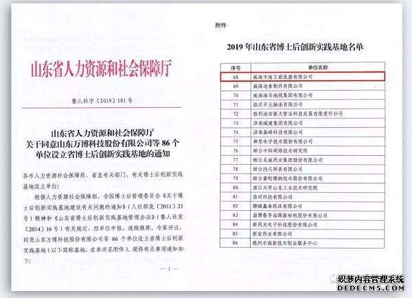 2019年11月8日,省人力資源和社會保障廳公布了2019年山東省博士后創(chuàng)新實(shí)踐基地名單。