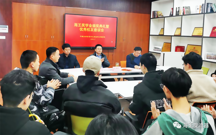 12月12日,中國(guó)礦業(yè)大學(xué)化工學(xué)院舉行海王科技創(chuàng)新教育基金捐贈(zèng)儀式。化工學(xué)院黨委書(shū)記周長(zhǎng)春、黨委副書(shū)記孫志強(qiáng),化工學(xué)院關(guān)工委常務(wù)副主任沈麗娟以及受科創(chuàng)教育基金支持的項(xiàng)目團(tuán)隊(duì)代表等30余人參加此次儀式。威海市海王旋流器有限公司副總經(jīng)理蔣春忠、大區(qū)經(jīng)理郭利健出席了捐贈(zèng)儀式。